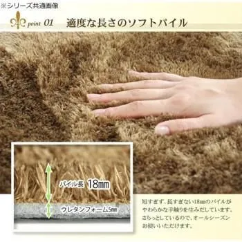 お部屋に合わせやすい高級感あふれるオーバーロック仕様のラグです。裏面には滑りにくい加工を施しているためフローリングでも安心してご使用いただけます。
