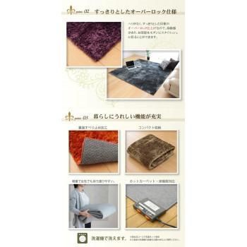 お部屋に合わせやすい高級感あふれるオーバーロック仕様のラグです。裏面には滑りにくい加工を施しているためフローリングでも安心してご使用いただけます。