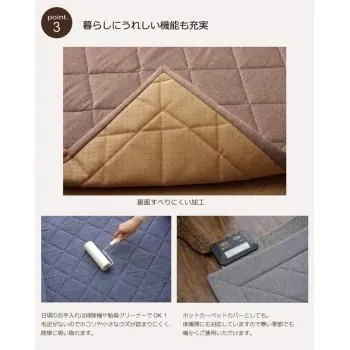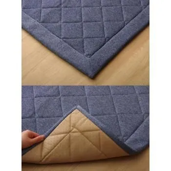 デニム調のキルティングラグカーペットです。キルティング加工をすることで、中綿が寄ったりズレたりしにくくなります。表地にはしなやかで伸縮性のある生地を使用しています。とても柔らかくソフトな風合いです。
