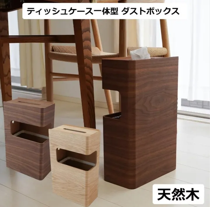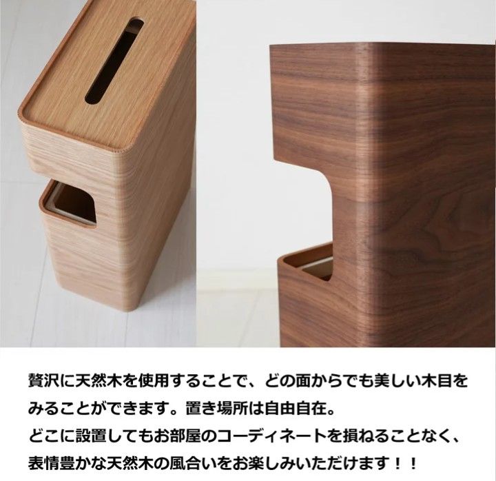 【商品名】天然木 ティッシュケース ダストボックス 一体型 ゴミ箱 10L 木製 スリム コンパクト 日本製で高品質ブランド SANAI サンアイ