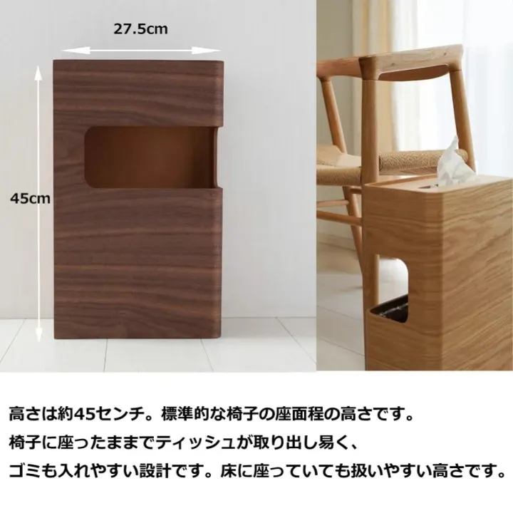 ティッシュとゴミ箱を一つにして省スペースを実現