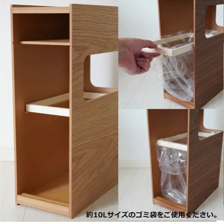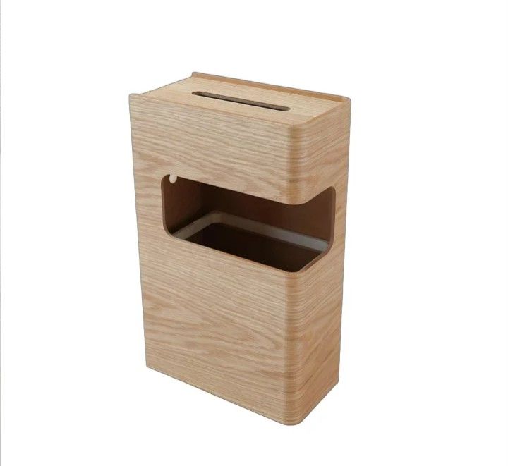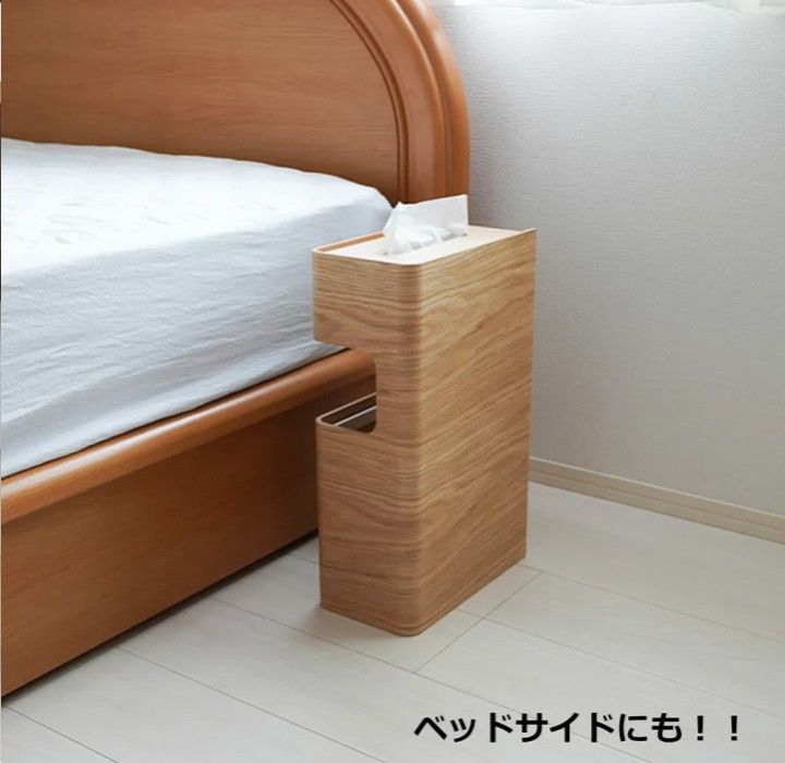 天然の木の風合い豊かに美しい曲線で作られたスリムなゴミ箱です