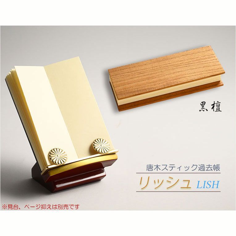 ◆従来の過去帳より約20%細身のスリム幅 コンパクトでオシャレです 現代的なモダンスタイル スリムコンパクトなスティック形は 小型仏壇でもジャマにならず便利です この細身でシンプルなフォルムは 現代的でモダンな印象を見せる洗練されたデザインです 見台にスッキリ置けて 引き出しにコンパクト収納 本物志向の天然木唐木を無垢材で仕上げた逸品 高級オイル仕上げで天然木唐木の本来の色味をだしています 木目が美しい天然木唐木の黒檀・紫檀・ケヤキの3素材をご用意 ※3種セットではございません 黒檀:遠目には黒でも 黒地に流れるような褐色の木目が入り 高級感が漂います 紫檀:着色でごまかさない本物志向の方におススメ 赤味を帯びた茶褐色に優雅さを感じます ケヤキ:大きな木目に和みの黄金色が お仏壇の中で明るく引き立ちます ページは過去帳の定番、優しく丈夫で手触りの良い 伝統的な「鳥の子和紙」製 中紙は自由にレイアウトできる罫線なし日無しの無地タイプ 小型仏壇に合う3.5寸をご用意 天然木が持つ優しさと温かみ 高級感があり、現代的なスタイルが印象的な おススメの新しい過去帳です