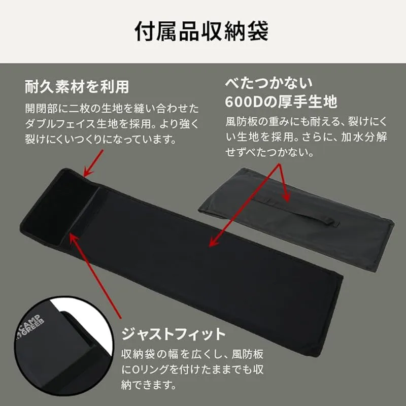 【転倒防止機能】風防板が転倒しないようペグやロープで固定できます。