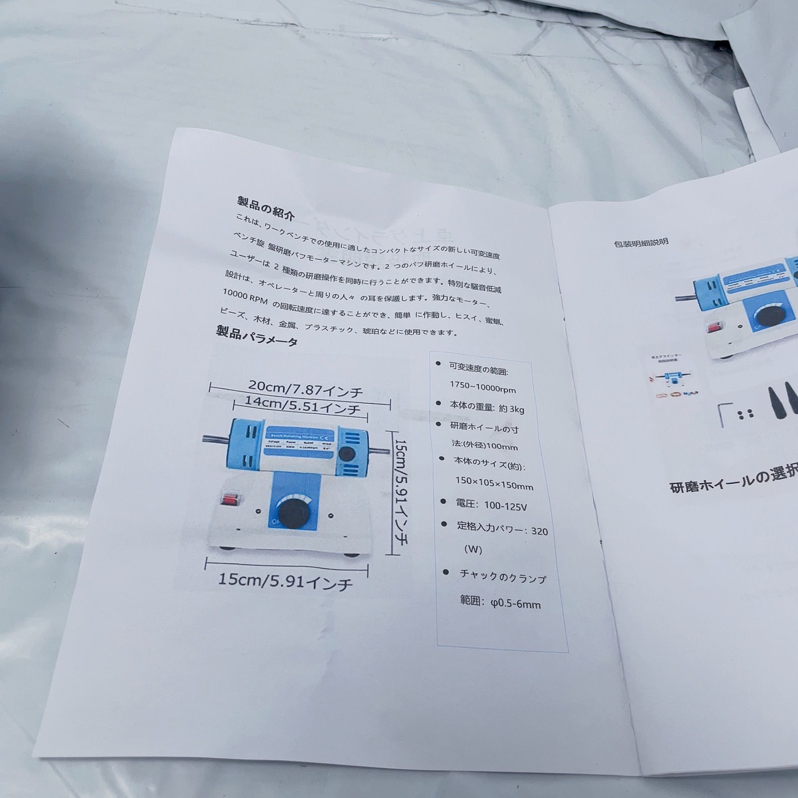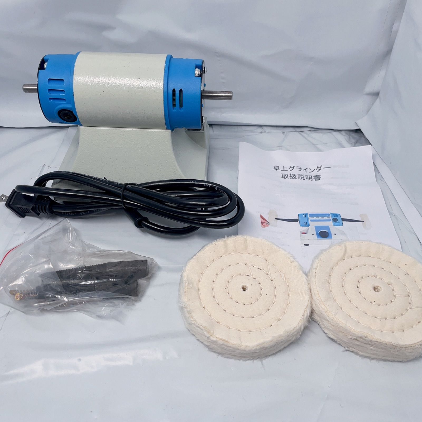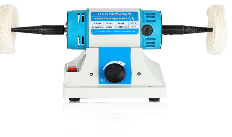 BAOSHISHAN 卓上グラインダー ポリッシャー ミニ両頭グラインダー 1750~10,000rpm 3kg 軽便グラインダー 320Wミニポリッシャー バフモーターセット100mm バフベンチグラインダー ミニバフ研磨機 110V-125v (青い)