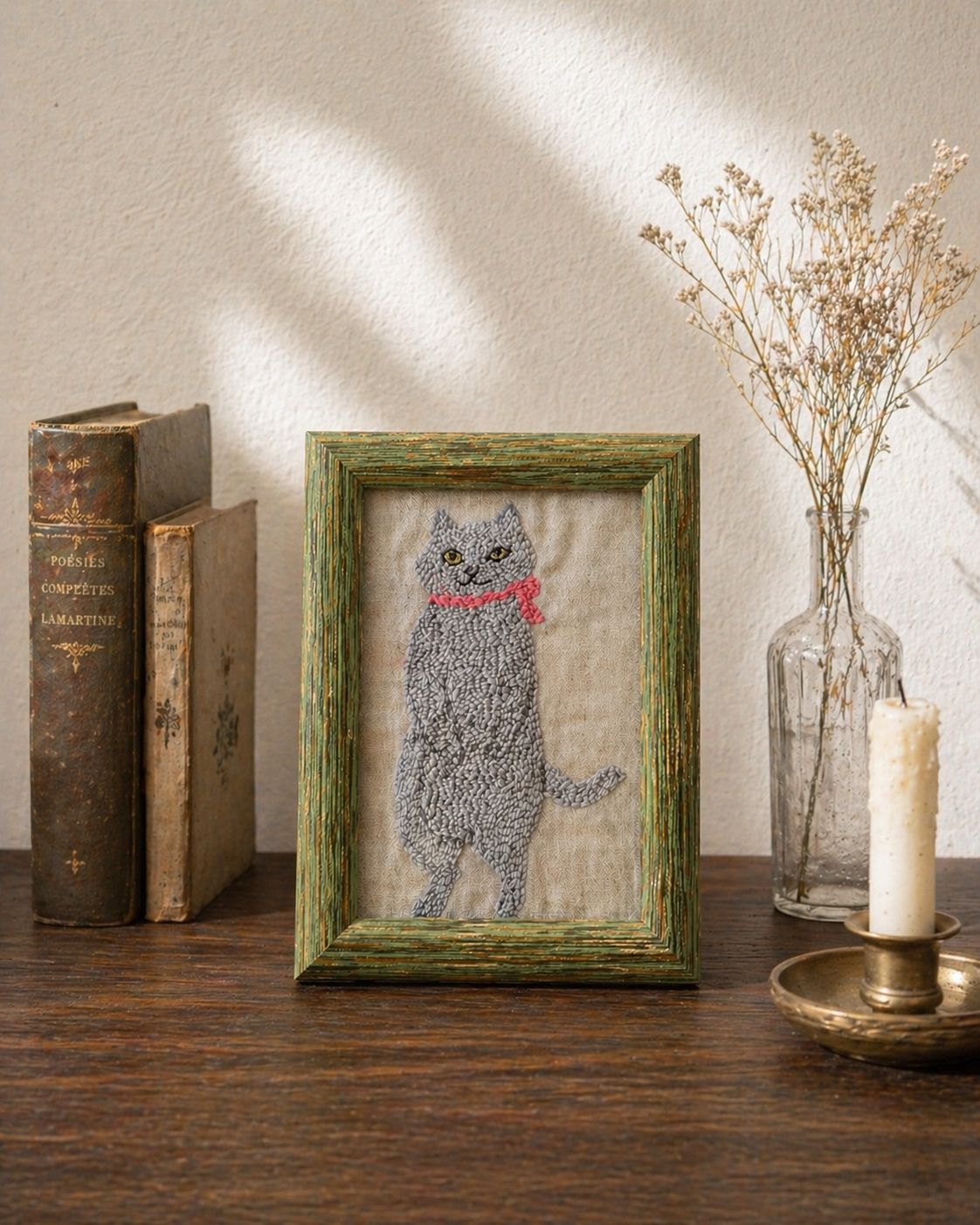 ❇︎刺し子糸でのパンチニードル刺繍作品です❇︎