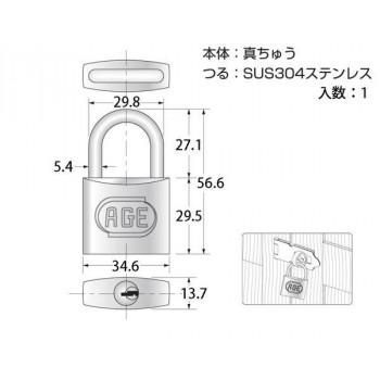 商品名:G-023 ステンレス弦Wロックシリンダー南京錠35mm同一鍵 3本キー 0071023