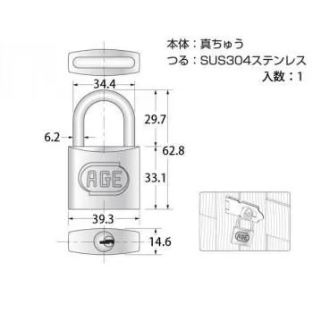 商品名:G-025 ステンレス弦Wロックシリンダー南京錠40mm同一鍵 3本キー 0071025