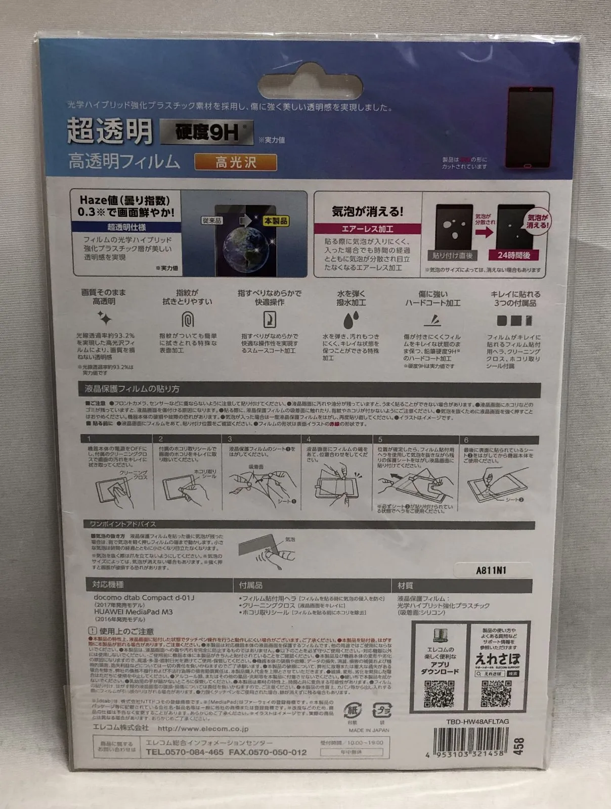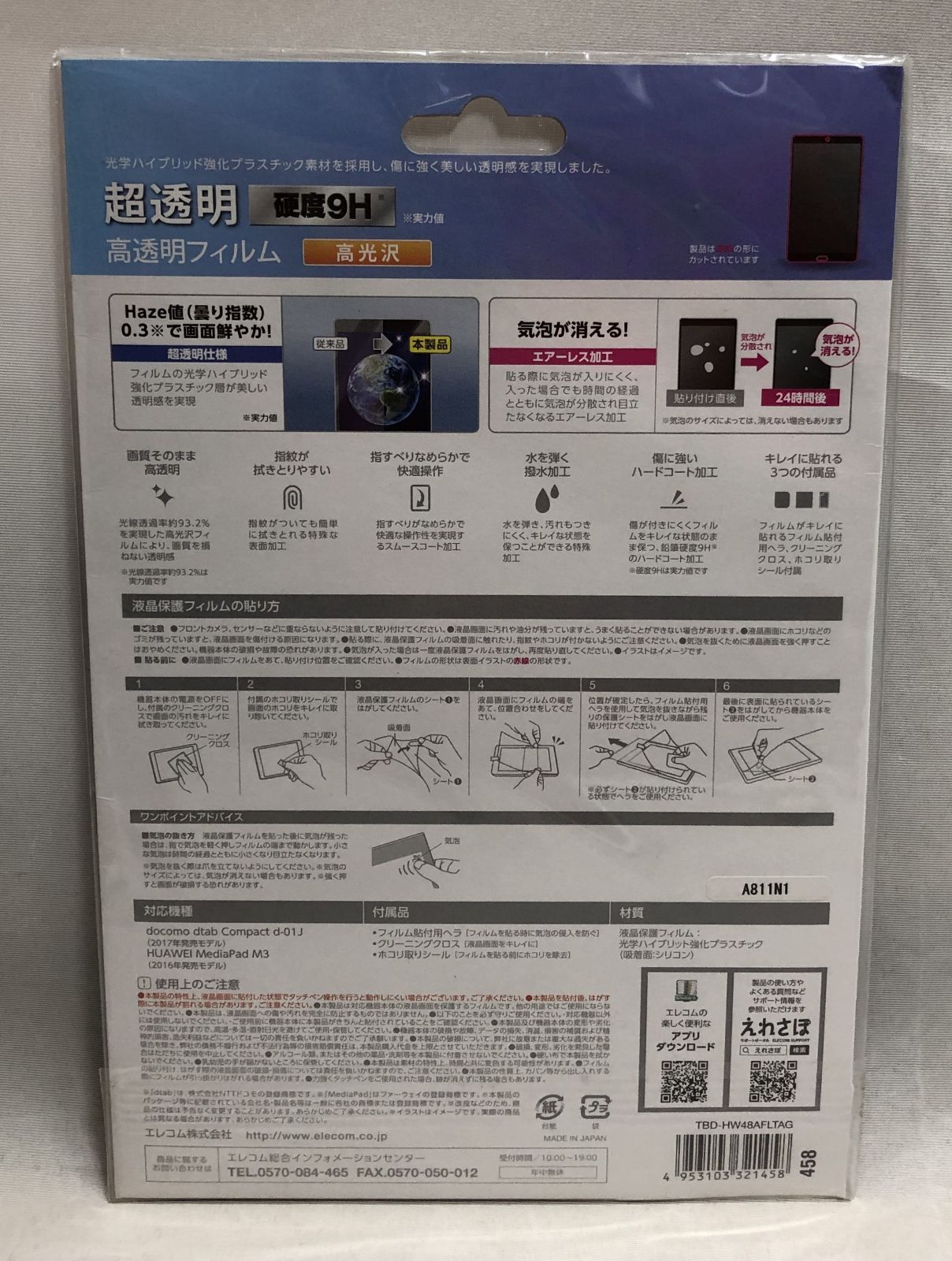 未開封◇ELECOM エレコム docomo d tab Compact d-01J MediaPad M3専用 高透明フィルム TBD-HW48AFLTAG