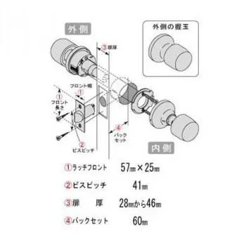 商品名:室内用取替錠前 個室・通路用 鍵なし 円筒握り玉 00776601-001