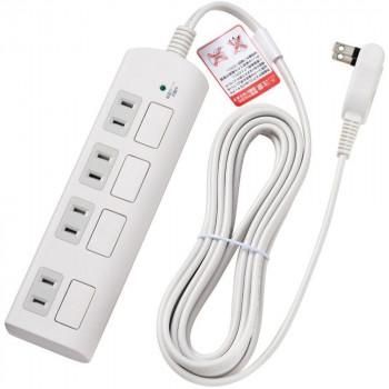 商品名:ELPA(エルパ) 耐雷サージ フラットスイッチ付タップ 4個口3m ホワイト WBS-LS403F(W)