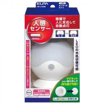 商品名:ELPA(エルパ) LEDセンサー付ライト 人感センサー 白色/電球色 切替可能 PM-L750W