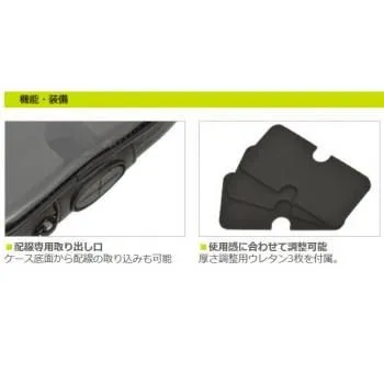 別売りのステーにスライドさせるだけのワンタッチ装着で、取り外しもワンプッシュ。防水生地と止水ファスナーを採用し、高い防塵性能で機器を保護します。ケース底面から配線の取り込みも可能。ケースに入れたまま操作が出来ます。厚さ調整用ウレタン3枚を付属。