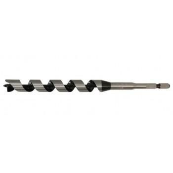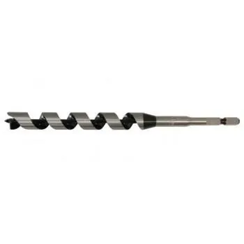 全サイズがインパクトドライバ対応の6.35mm六角軸です。先ネジとケガキ刃を従来ドリルより小さくすることで、インパクトドライバ使用時の切削抵抗を抑えられバッテリー寿命が20%UPします。ドリル先端が先ネジタイプです。先ネジの回転力を利用して、押さえつけなくてもスムーズな穴あけが可能です。