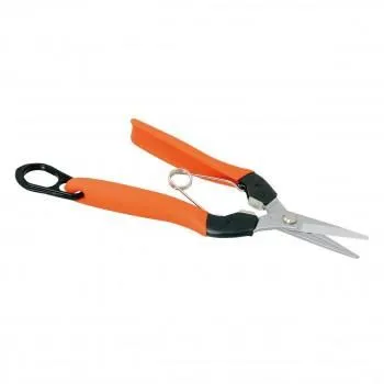 野菜・果実の収穫や摘果に。細かな作業に最適な直刃です。手への衝撃を吸収クッション機能により、切断時におきる衝撃を大幅に軽減します。羽根付ストッパーではずしやすい。