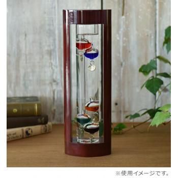 ガリレオ・ガリレイが発見した、液体の比重が温度によって変化する原理を使って作られた温度計です。ガラス球が温度によって上下します。インテリアとして、置くだけでも目を楽しませてくれる温度計です。