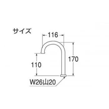 商品名:三栄水栓 SANEI 水栓用品 横形ツル首パイプ PA26J-60X-16