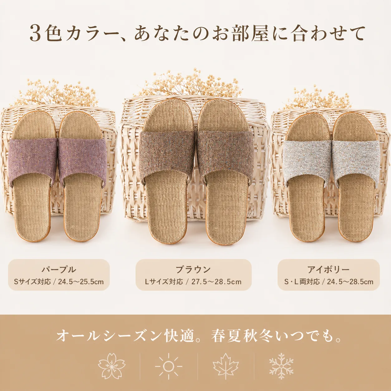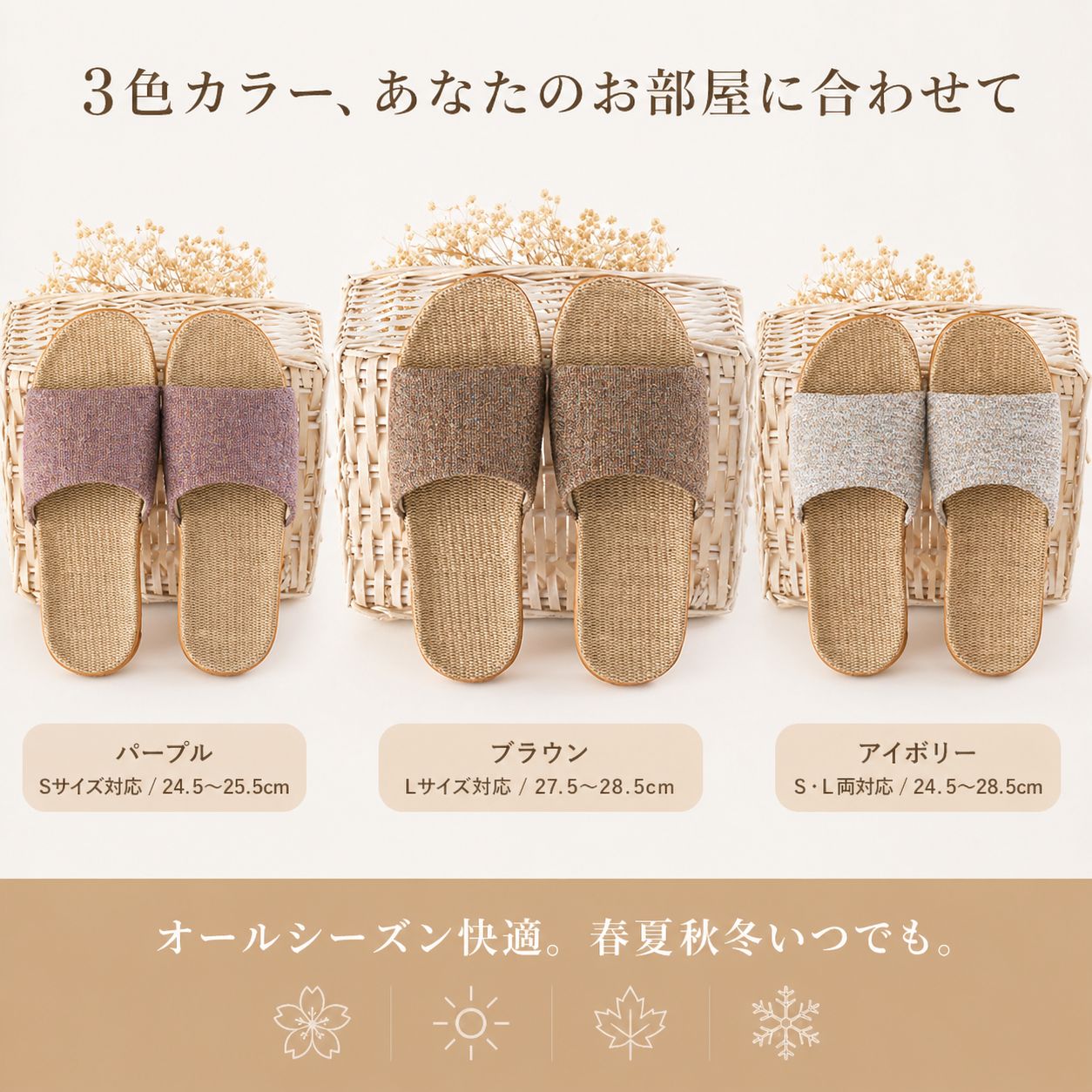 パープル・ブラウン・アイボリーの3色からお選びいただけます。