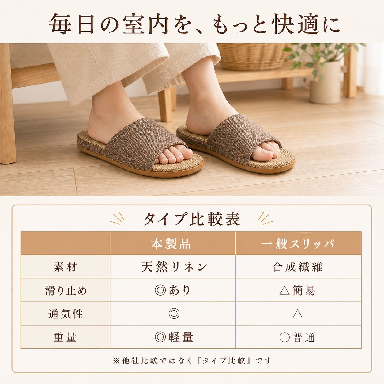 オープントゥデザインで指先が圧迫されず、リラックスした履き心地です。