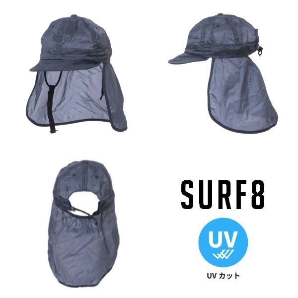SURF8のサーフキャップ「スーパーライトビーチキャップ 86S3UC4 ダークシャドウ」。