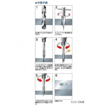 インパクトドライバーなどの正逆回転付機種に取り付け可能で、ラクラクネジ穴加工が出来ます。被削材内部の切り屑を前方に排出。折れにくく、安定加工。チタンコーティングにより、耐久性の向上。ステンレスにも使用出来ます。
