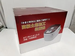 【商品紹介】 メーカー:大栄トレーディング 型番:DT-SH1410-3 炊飯容量:2合-6合炊き かまど炊きのご飯をご自宅で 高級土鍋加工炊飯器 定格周波数 50Hz/60Hz 定格消費電力 600w 定格電圧 100v 製品サイズ 300×256×220