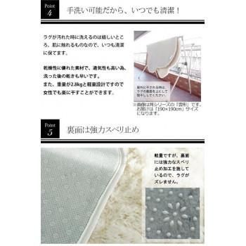 商品名:手洗いOK!!スベリ止め付き マイクロファイバーロングシャギーラグ 190×190cm スノー「GSCD508373」