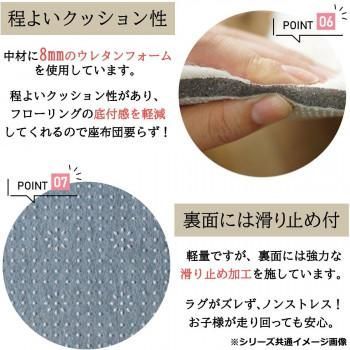 年中使用できて手洗い可能なマイクロファイバーロングシャギーラグです。滑り止め付きでラグがずれにくく、遊び毛の出にくい超極細繊維を使用しているため、さらさらの肌触り!!さらに耐熱加工を施しているので、ホットカーペット・床暖房にも対応しています。