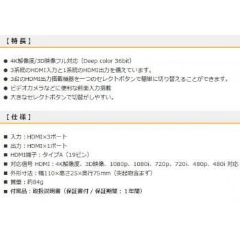 商品名:OHM 3ポート HDMIセレクター AV-S03S-K