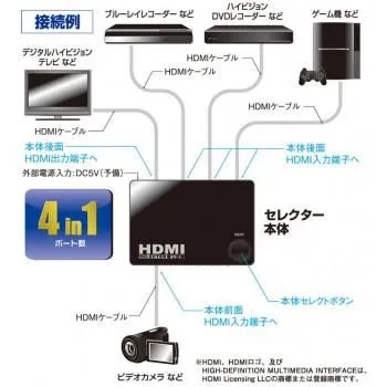 ブルーレイレコーダー、DVDレコーダー、ゲーム機、ビデオカメラなど、4台のHDMI機器をボタンひとつでカンタンに切り換えできます。