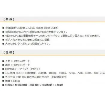 商品名:OHM 4ポート HDMIセレクター AV-S04S-K