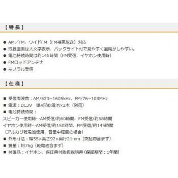 液晶画面は大文字表示でバックライト付。見やすく選局がしやすいポケットラジオです。