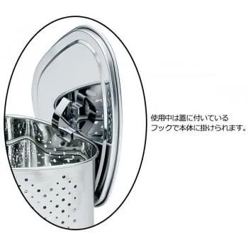 銅を含有した抗菌ステンレス鋼使用の為、雑菌の増殖を抑え、ぬめりが発生せず清潔にお使いいただけます。蓋付きなので中のゴミが見えず、蓋にフックが付いているので使用中は本体に掛けられます。