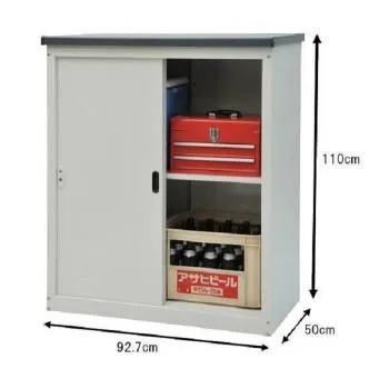 日本人の身長に合わせ使いやすさを考えた、置き場所を選ばないスリムな物置です。天板は内側から止めるので、ビスが外側から見えず綺麗で安全!!扉には鍵(オープン及びクローズの表記付き)も付いていて安心設計。強度があり熱に強く、汚れにも強くなっています。ドライバー1本で組立可能です!!