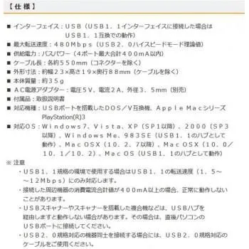 パソコンの電源だけで動作するバスパワー専用タイプのUSBハブ。