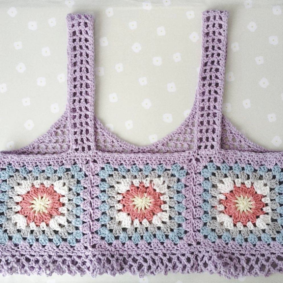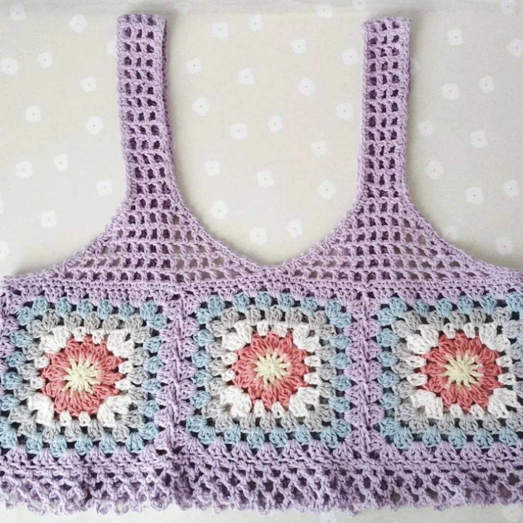 かぎ針編みのクロシェ模様が綺麗な手編みのニットビスチェです。