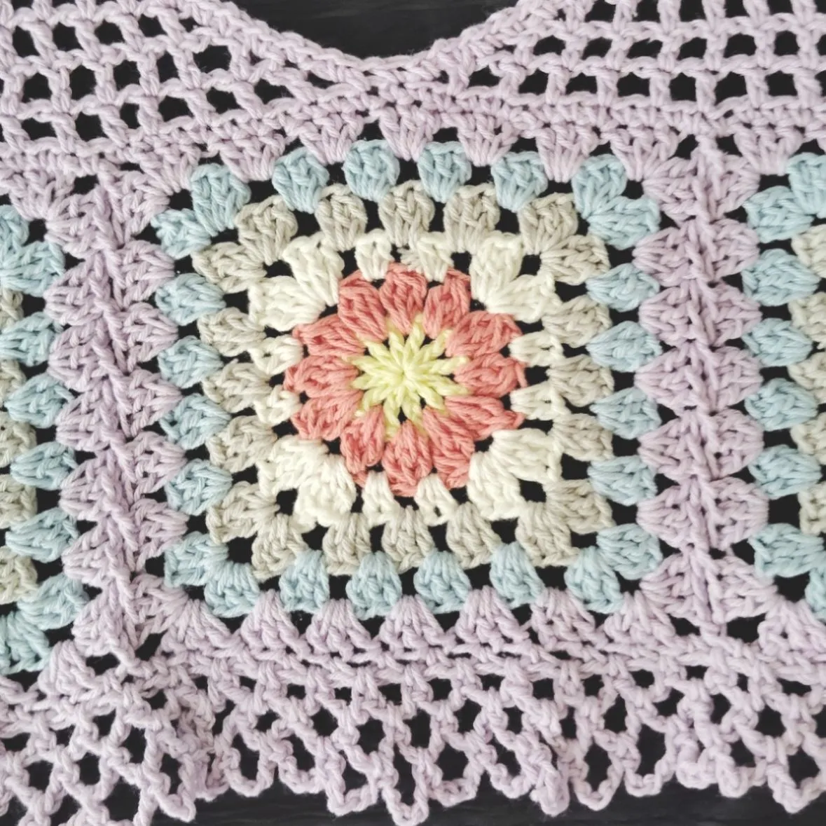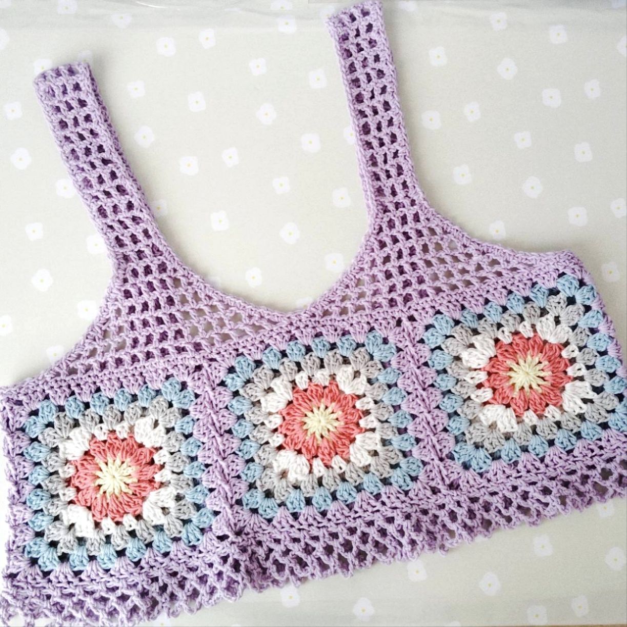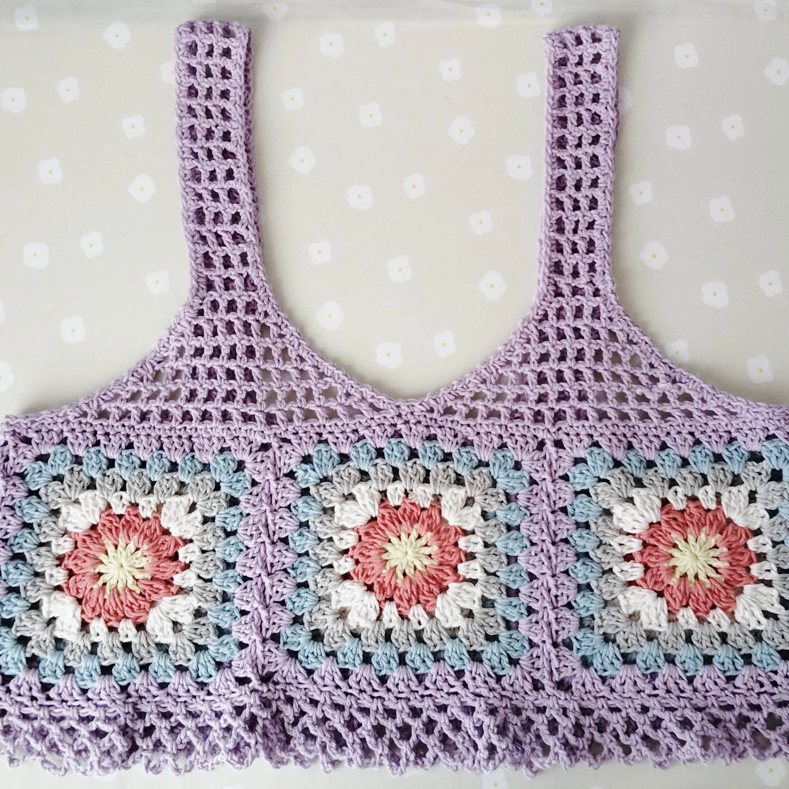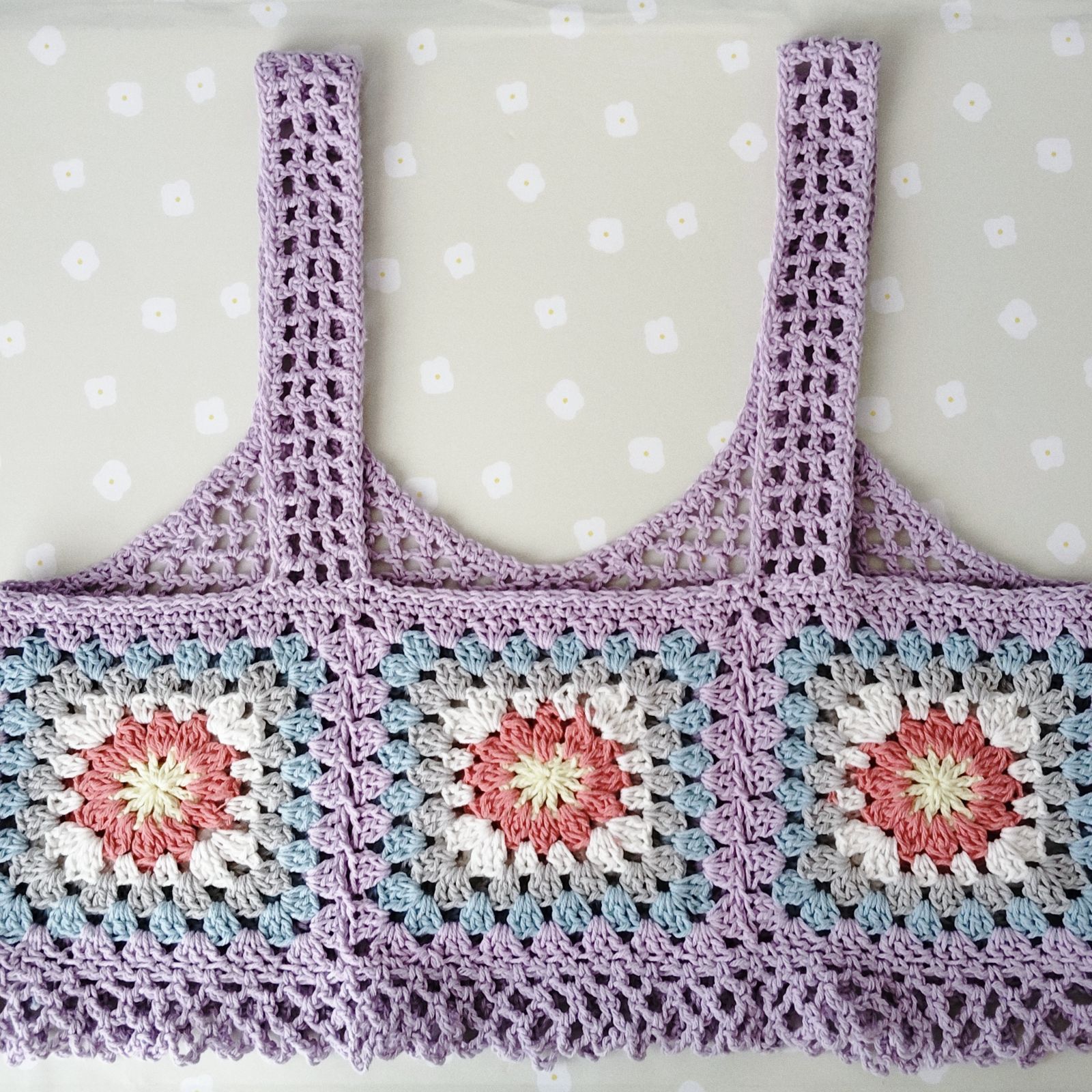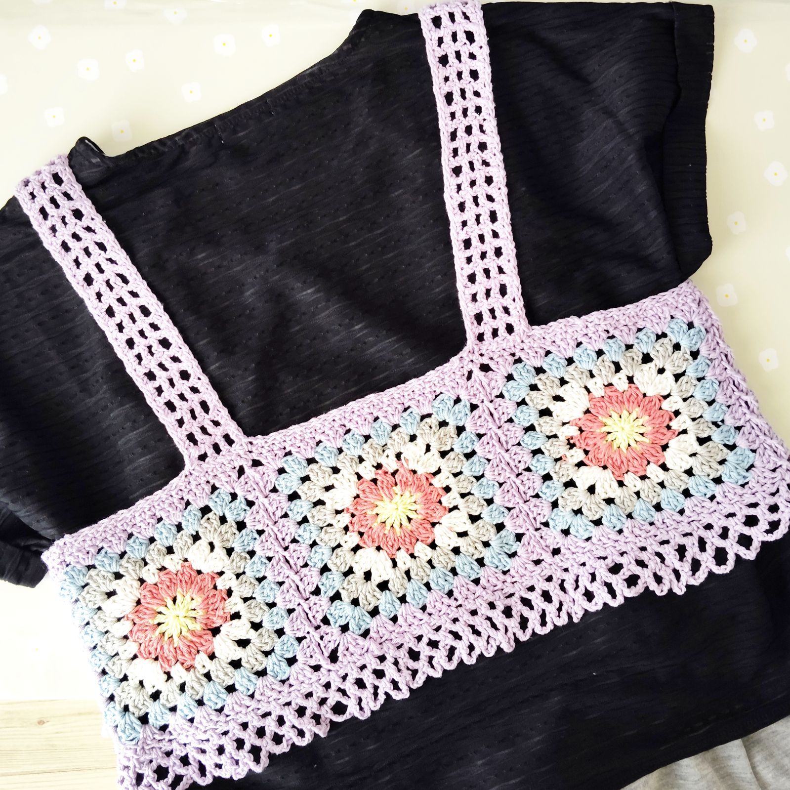 かわいいモチーフ編みのお花が特徴です。