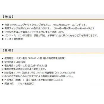夜道でのランニングやサイクリング時の安全対策におすすめ。IPX4(防飛まつ形)仕様の7色LEDアームバンドです。