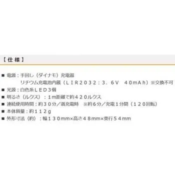 商品名:OHM ダイナモLEDライト 手回し発電 LED-D02S