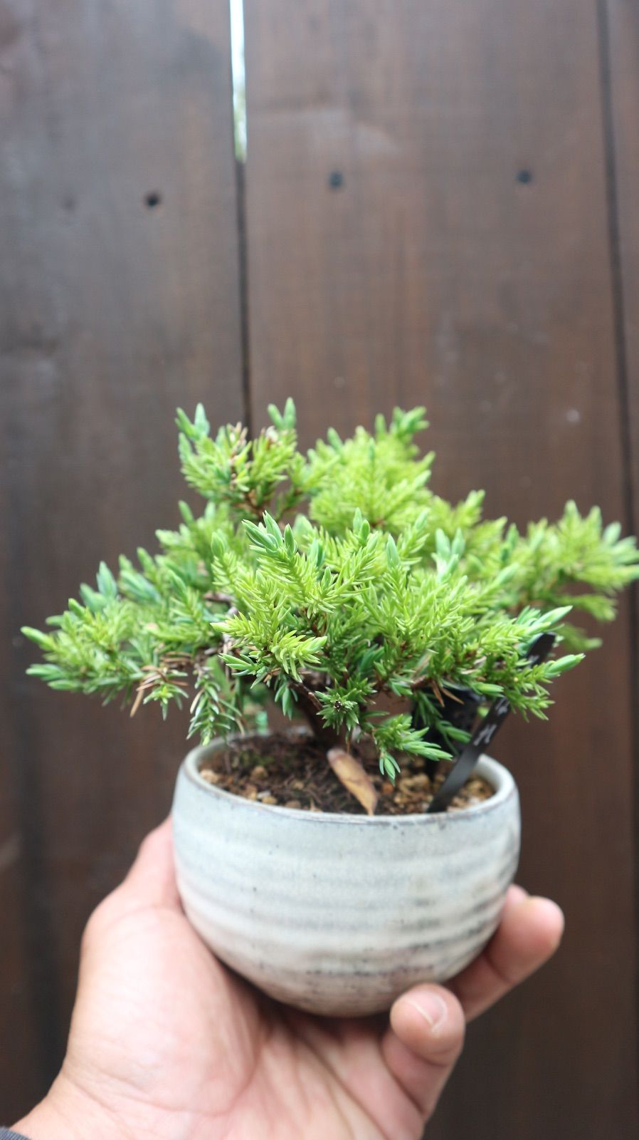 磯馴 (そなれ) 人気の真柏の近縁種です♪ 信楽焼鉢付き ミニ盆栽 エコ梱包♪ そのまま飾れます♪