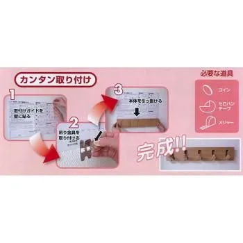カンタンに取り付けできる壁掛け3連収納フック。