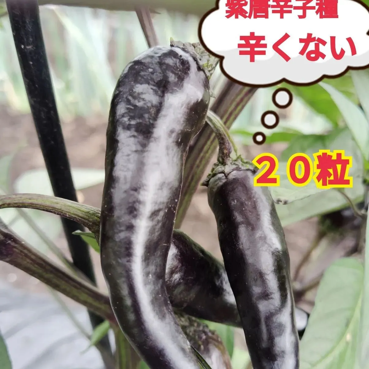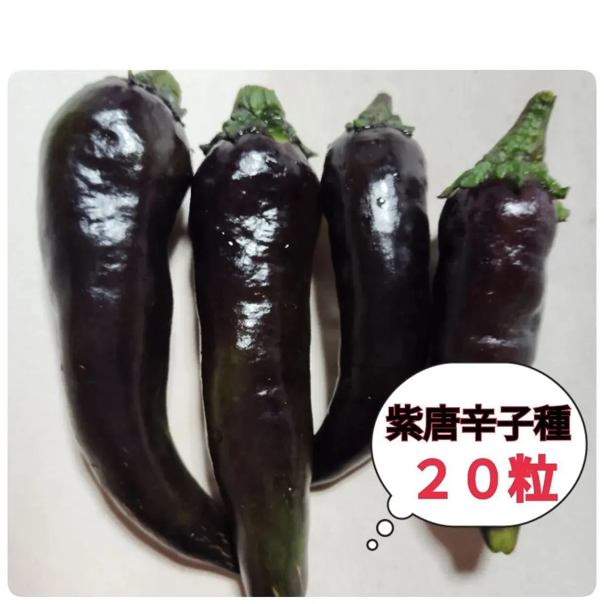 2025年 農薬不使用 化学肥料不使用で自家採種した種 辛くない 紫唐辛子種 20粒 紫唐辛子は奈良の伝統野菜 熟すと赤くなります タネの出品 最後の画面は発芽した写真です