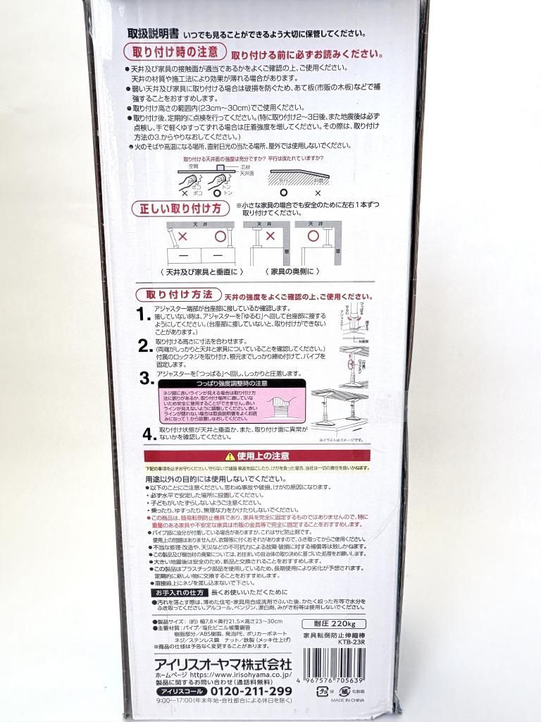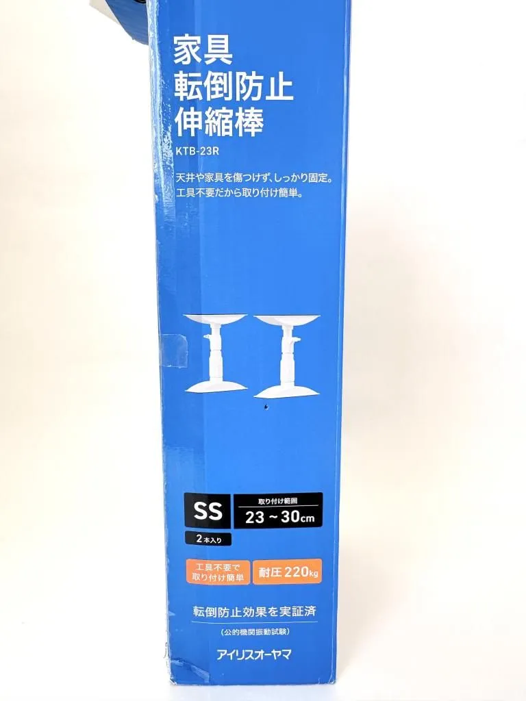 アイリスオーヤマの、地震による家具の転倒を防止する伸縮棒(つっぱり棒)です。