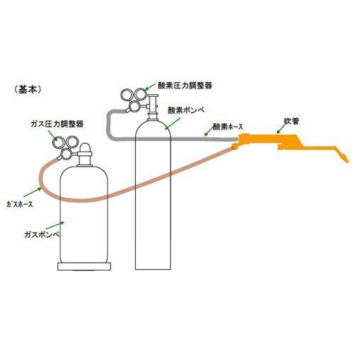 これにより酸素とガスの混合比をかえ、炎と温度の状態を調整します。