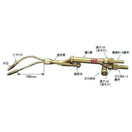 熔接用バーナーの出力はガスが燃焼した時の1時間あたりの消費量(L)を表しており、その数値が火口に打刻されています。