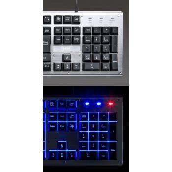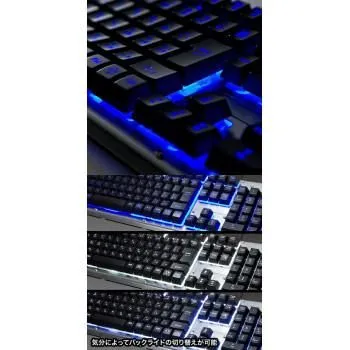 キーボードにバックライトを搭載しています。ブルー・ホワイト・ライトパープルの3色が切り替え可能です。ケーブルを接続したままで、すべてのキーをロックする機能が付いています。