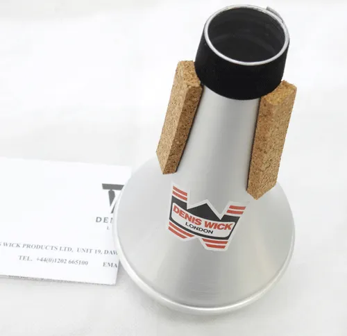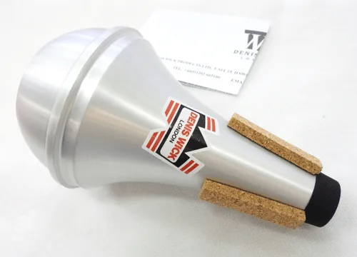 イギリスの金管楽器アクセサリーメーカー:デニスウィック。デニスウィックのミュートは熟練の技を持つ職人の手作業により音質や音程のクオリティが常に高く保たれています。デニス・ウィックがロンドン交響楽団において現役で活躍していた頃、プロトタイプを製作しては、同楽団で試奏していました。作曲家のB,ブリテンが同席した際に「これぞ私の求めていた音色だ!」といったのが現在のストレートミュートのデザインインです。