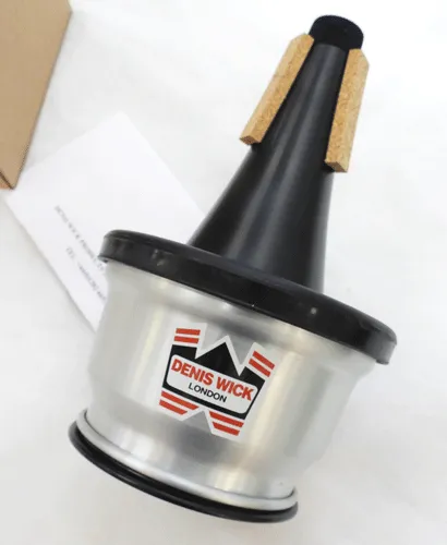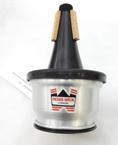 イギリスの金管楽器アクセサリーメーカー:デニスウィック。デニスウィックのミュートは熟練の技を持つ職人の手作業により音質や音程のクオリティが常に高く保たれています。デニス・ウィックがロンドン交響楽団において現役で活躍していた頃、プロトタイプを製作しては、同楽団で試奏していました。作曲家のB,ブリテンが同席した際に「これぞ私の求めていた音色だ!」といったのが現在のストレートミュートのデザインインです。