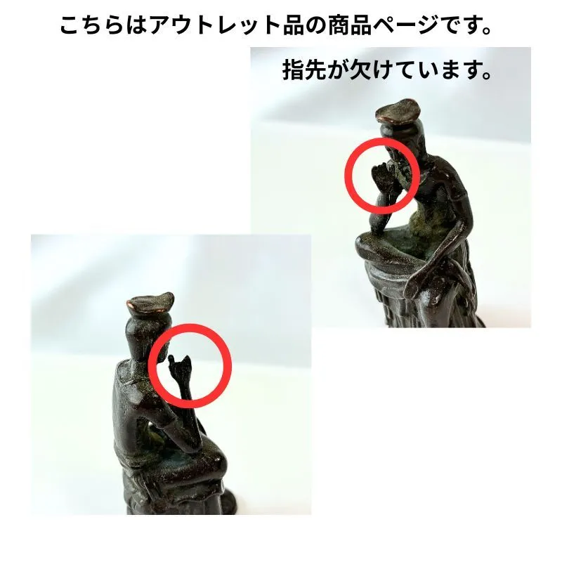 右足を左脚の上に乗せ、右手を頬に添えて考えている姿が特徴です。