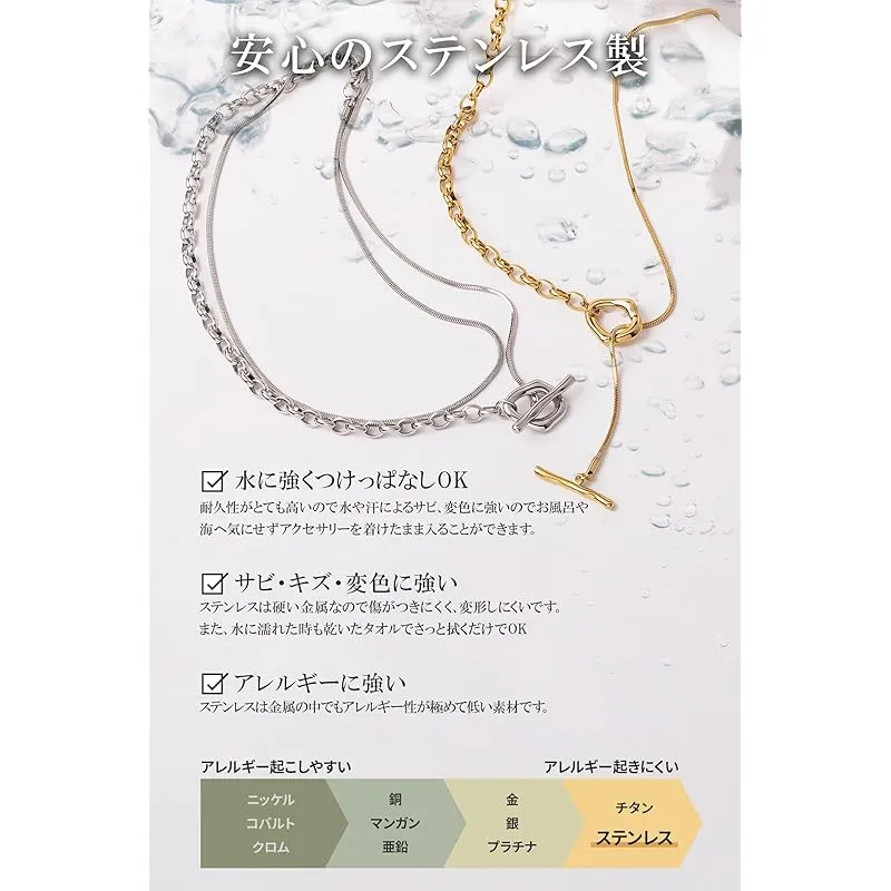 【お風呂、海OK】 耐食性がとても高いので水や汗によるサビ、変色に強いのでお風呂や海へ気にせずアクセサリーを着けたまま入ることができます。